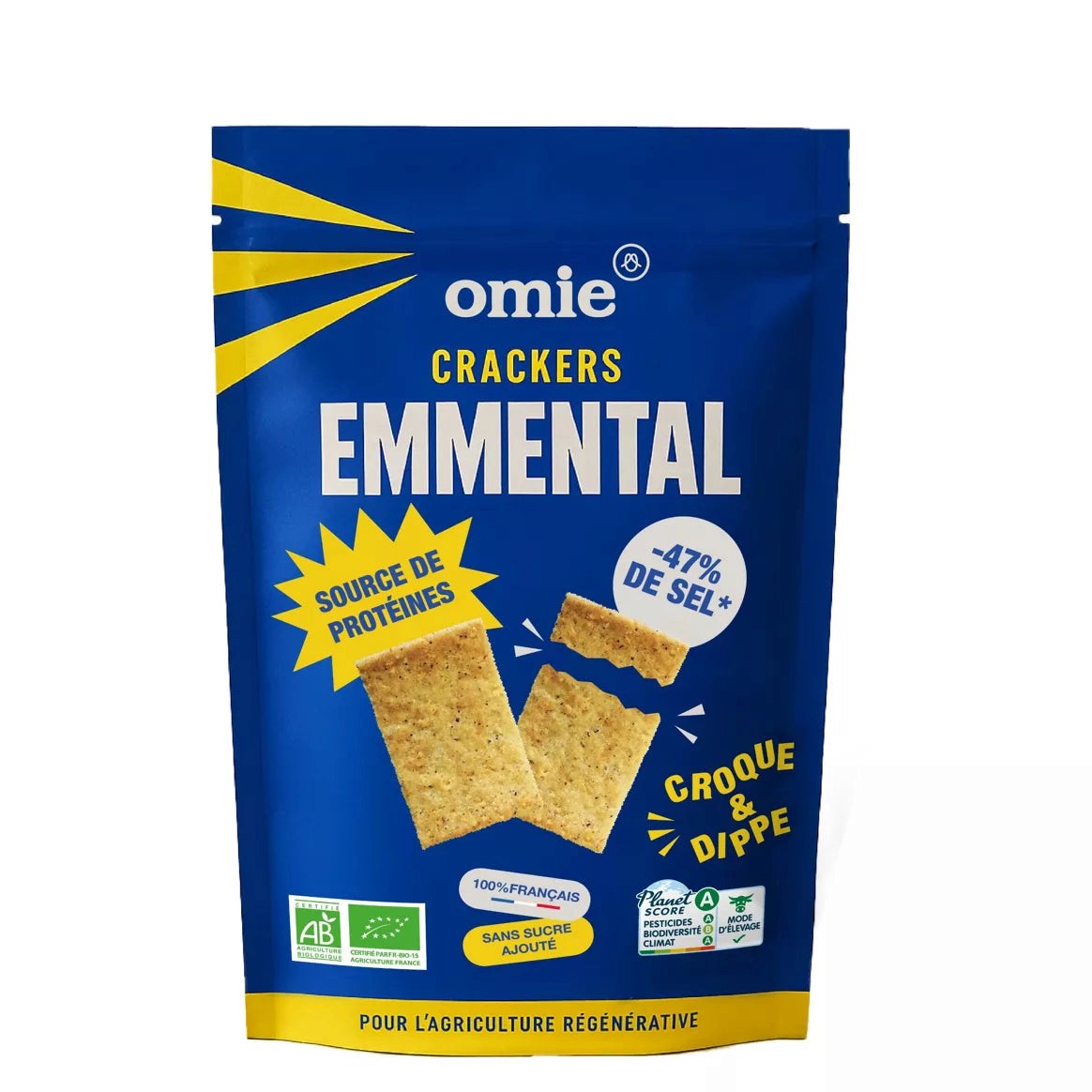 • Une recette gourmande sans artifices. Grâce au mélange de farine de blé et de farine de sarrasin, ces crackers sont ultra craquants. Une portion généreuse d'emmental permet d'obtenir un goût savoureux, sans aucun arôme. Un taux de sel maîtrisé permet de sublimer le tout. Contrairement aux crackers au fromage dominant le marché, nos crackers ne subissent pas de procédé d'ultra transformation par extrusion. Notre processus de fabrication consiste en la formation de la pâte, le laminage puis la cuisson au four, préservant ainsi la texture et la qualité des ingrédients.
