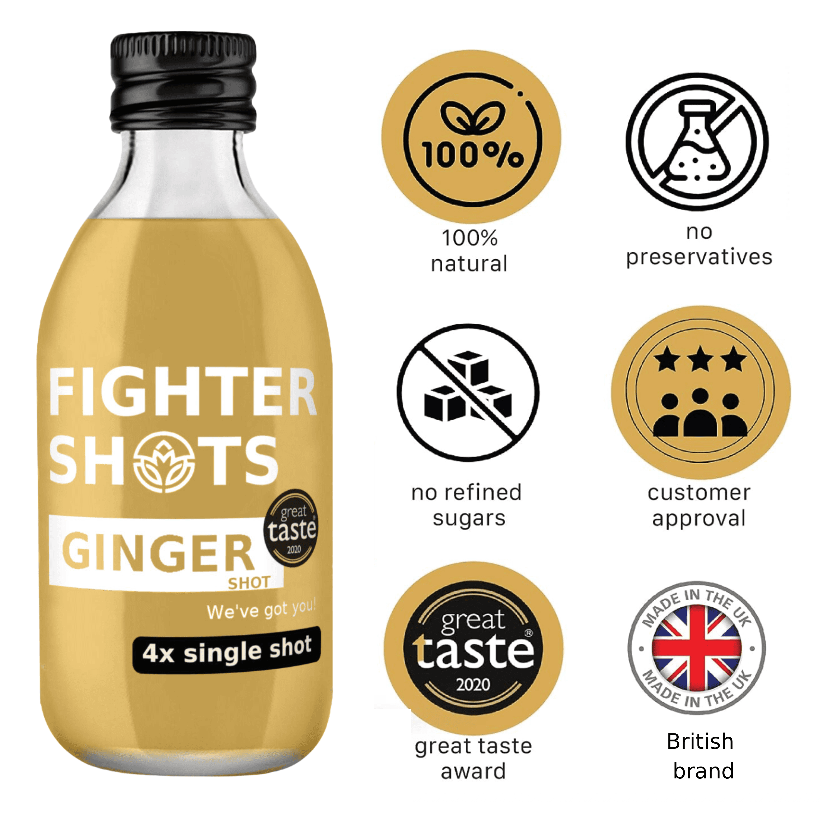 SHOT DE BIEN-ÊTRE 100% NATUREL, PRESSÉ À FROID : La Bouteille de Gingembre de Fighter Shots offre du gingembre et du citron biologiques de qualité supérieure, fournissant un boost quotidien pratique pour l'immunité, l'énergie et la digestion. Parfait pour le matin, après l'entraînement, ou à tout moment où vous avez besoin d'un coup de fouet rafraîchissant.